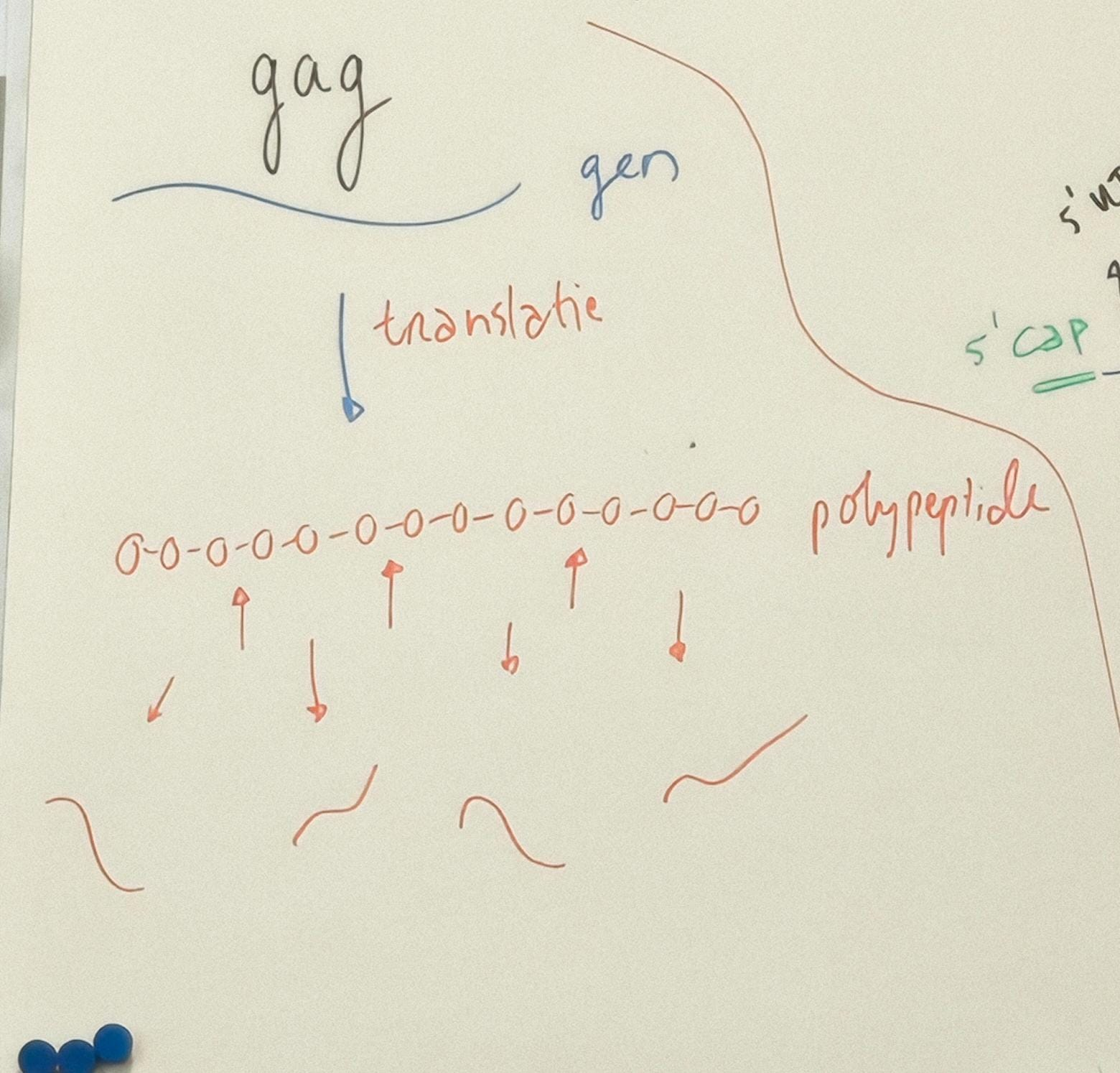 Na translatie wordt wordt het polypeptide geknipt, ipv dat er verschillende mRNA’s worden gemaakt