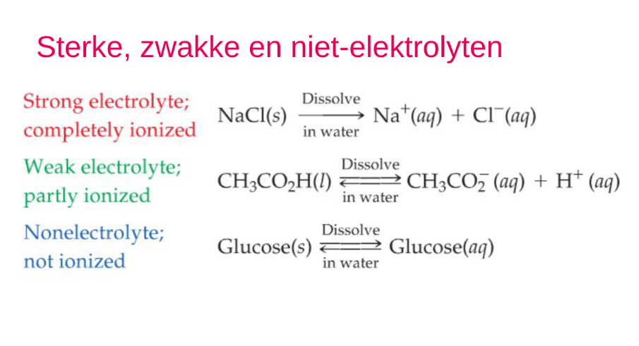 Stoffen die opgelost in water en/of in gesmolten toestand, stroom geleiden.